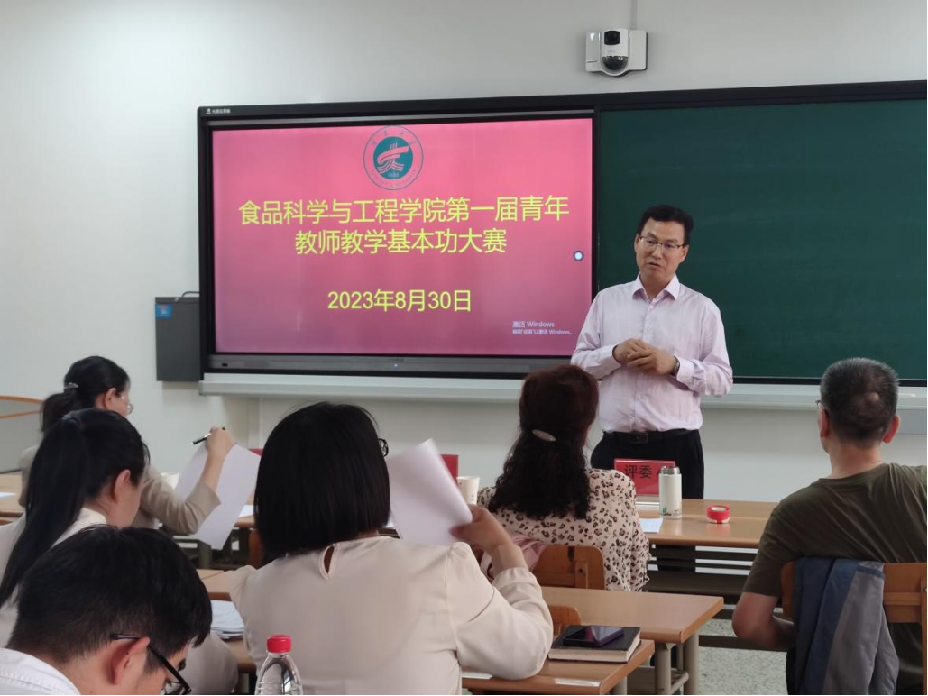 为进一步提升青年教师的教学技能和业务水平,搭建青年教师相互交流和共同成长的平台,开拓教学育人的新理念,食品科学与工程学院于8月30日下午在贺兰山校区兰山一教C504举办了第一届青年教师教学基本功大赛。比赛由学院副书记、副院长王松磊主持。