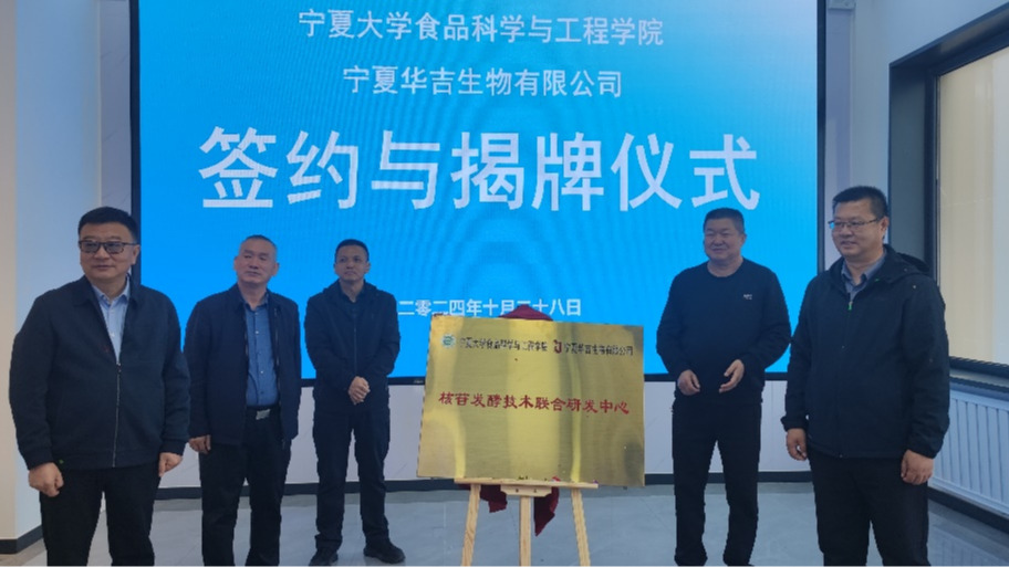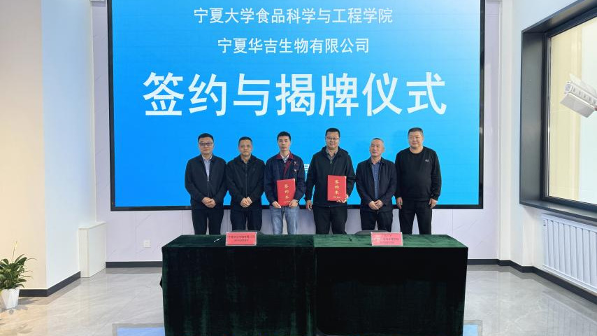健康食品生物制造团队与宁夏华吉生物有限公司合作签约暨“核苷发酵技术联合研发中心”揭牌仪式在华吉生物公司技术中心隆重举行。