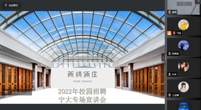 为了更好的拓宽毕业生就业渠道,2022年4月1日下午14:00,西鸽酒庄举办了线上招聘会议。通过PPT展示讲解的方式,HR向同学们介绍了公司的香港六合彩直播-香港六合彩开奖结果现场直播、现有产业结构、组织构架、福利待遇。西鸽酒庄成立于2017年,酒庄总建筑面积约2.5万平米,包含葡萄酒酿造区、橡木桶酒窖、灌装区、瓶装陈酿酒窖、专业品鉴区、游客接待中心、庄园酒店和有机特色餐厅,年设计产能1000万瓶,是宁夏综合设施相对完整、建筑标准超卓的酒庄。作为酒庄长期发展规划的一部分,西鸽种植团队仍在不断挑选优异条件的地块,预计22年将新开超过1万亩新地。此外,西鸽也持续投入品种及技术创新,不断挖掘宁夏风土的潜力与未来。此外我们也与法国波尔多学院,国内业内顶尖高校携手教研实践项目,为创新技术时间及人才培养提供平台。