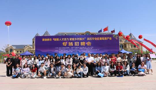 为扎实推进学习贯彻习近平新时代中国特色社会主义思想主题教育,落实党和国家关于做好高校毕业生就业工作的决策部署,通过党建赋能全面推进就业工作,6月15日上午,由宁夏大学葡萄酒与园艺学院和自治区人力资源和社会保障厅、宁夏贺兰山东麓葡萄酒产业园区管理委员会、吴忠市人民政府、红寺堡区人民政府、宁夏葡萄酒与防沙治沙职业技术学院主办的青铜峡市“凝聚人才活力 赋能乡村振兴”高校毕业生葡萄酒产业专场招聘会在宁夏青铜峡市密登堡酒庄举行。