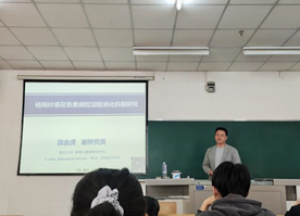 活动伊始,田金虎老师从研究背景入手,介绍了高碳水的摄入带来的血糖问题,并讲述了血糖调控机制、淀粉消化过程、杨梅叶原花色素的结构与功能。并从BLPs对淀粉加工及消化特性的影响、BLPs抑制淀粉消化酶活性的机制、BLPs抑制淀粉消化酶活性的机制等五个方面对其研究进行详细讲解。报告结束后,同学们针对该课题提出疑问,田老师一一解答,教室里展开了激烈的学术讨论。