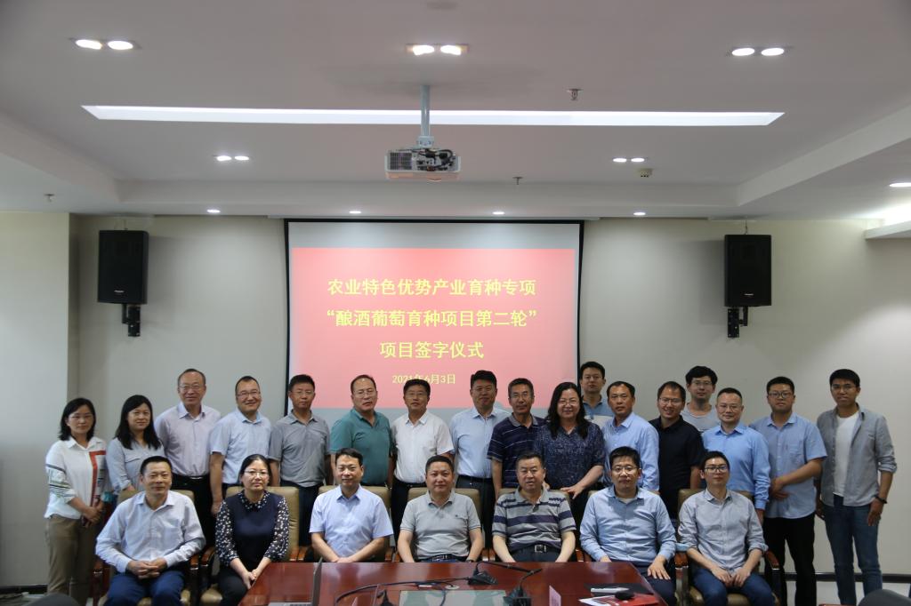 6月3日,由宁夏大学与中国科学院植物研究所联合主持,宁夏农林科学院、宁夏气象科学研究所、沈阳农业大学、郑州果树研究所、西北农林科技大学、中国科学院武汉植物园、上海交通大学参与的自治区农业特色优势产业育种专项---“优质抗寒旱酿酒葡萄新品种选育”项目第二期正式启动。自治区科学技术厅副厅长刘常青、宁夏大学副校长李建设、宁夏科技厅农村科技处处长徐小涛、副处长朱少绯、宁夏大学科技处处长曹兵、食品与葡萄酒学院书记张宁、院长张亚红、副院长徐伟荣以及项目相关单位课题骨干参加了项目启动会。宁夏贺兰山东麓葡萄产业园区管理委员会副主任赵世华、工程师苏丽以及北方民族大学生物科学与工程学院马海军副院长作为专家参加启动会。