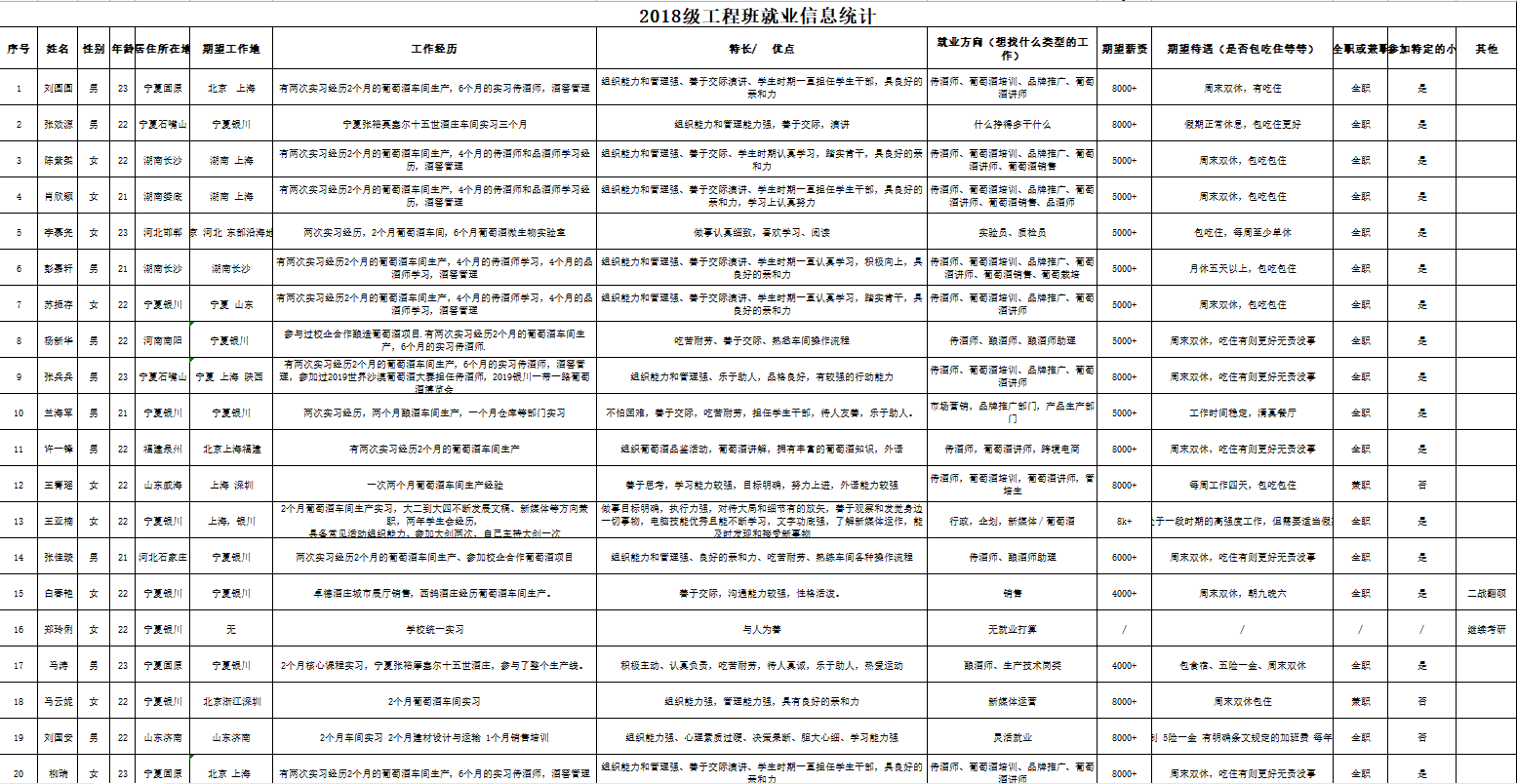 在全国疫情严峻之际,食品与葡萄酒学院高度重视防疫工作和就业部署,第一时间成立学院就业工作领导小组,积极开展应对疫情影响的就业可替换方案,始终把学生的生命安全和就业需求放在首位。通过线上线下、点对点等多种形式关心学生就业意向,全面摸排待就业学生基本信息、综合素质、目标城市、薪资意向等基本信息,建立就业信息台账进行科学就业指导。