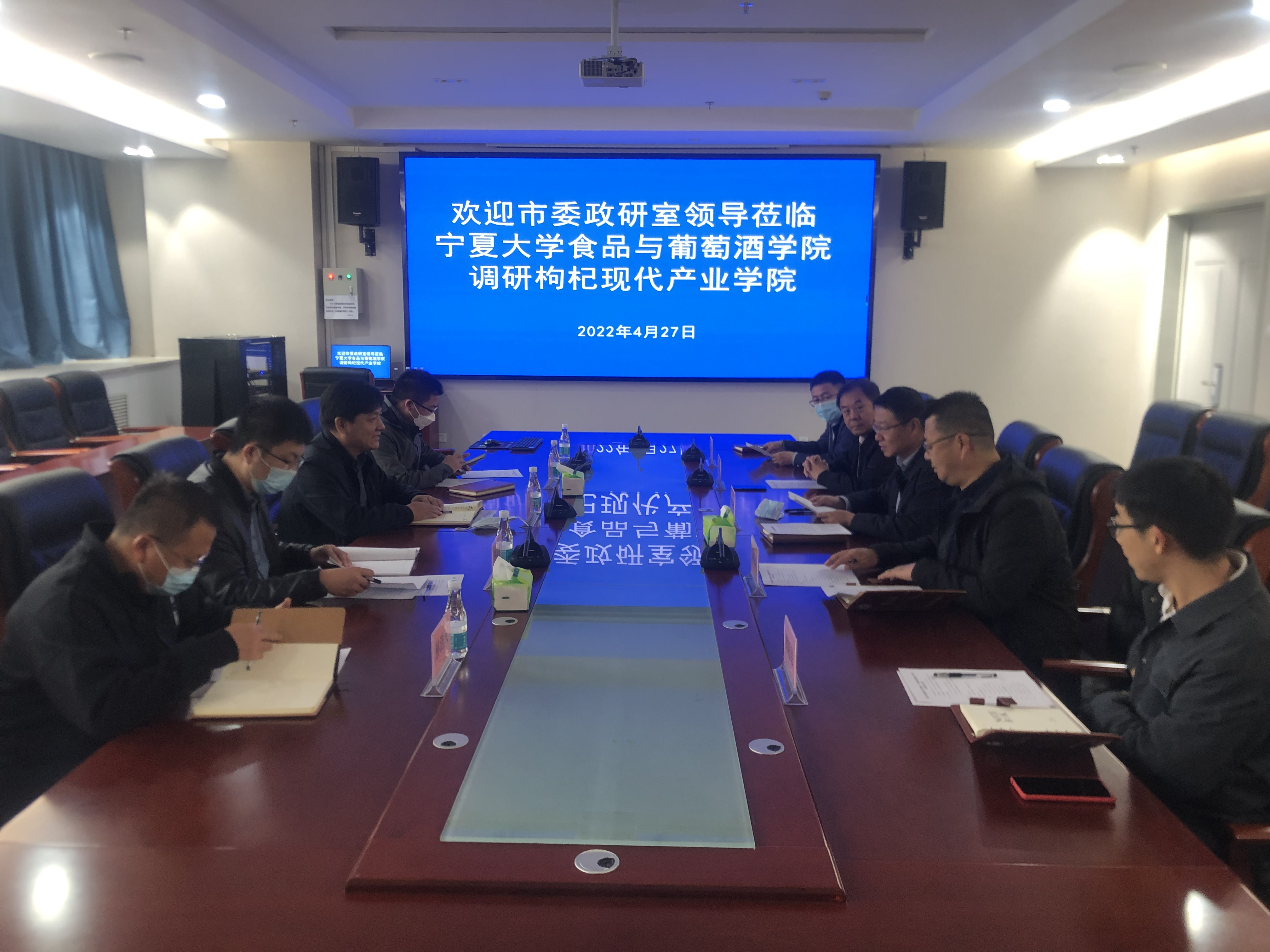 4月27日上午9:00,银川市委政研室副主任李耀续一行莅临香港六合彩直播 调研枸杞现代产业学院建设情况。双方就围绕银川打造中国枸杞精深加工基地、科研成果转化等方面进行了深入交流。香港六合彩直播 张军翔副院长、方海田副院长,刘敦华教授,王梦泽博士参加了座谈。