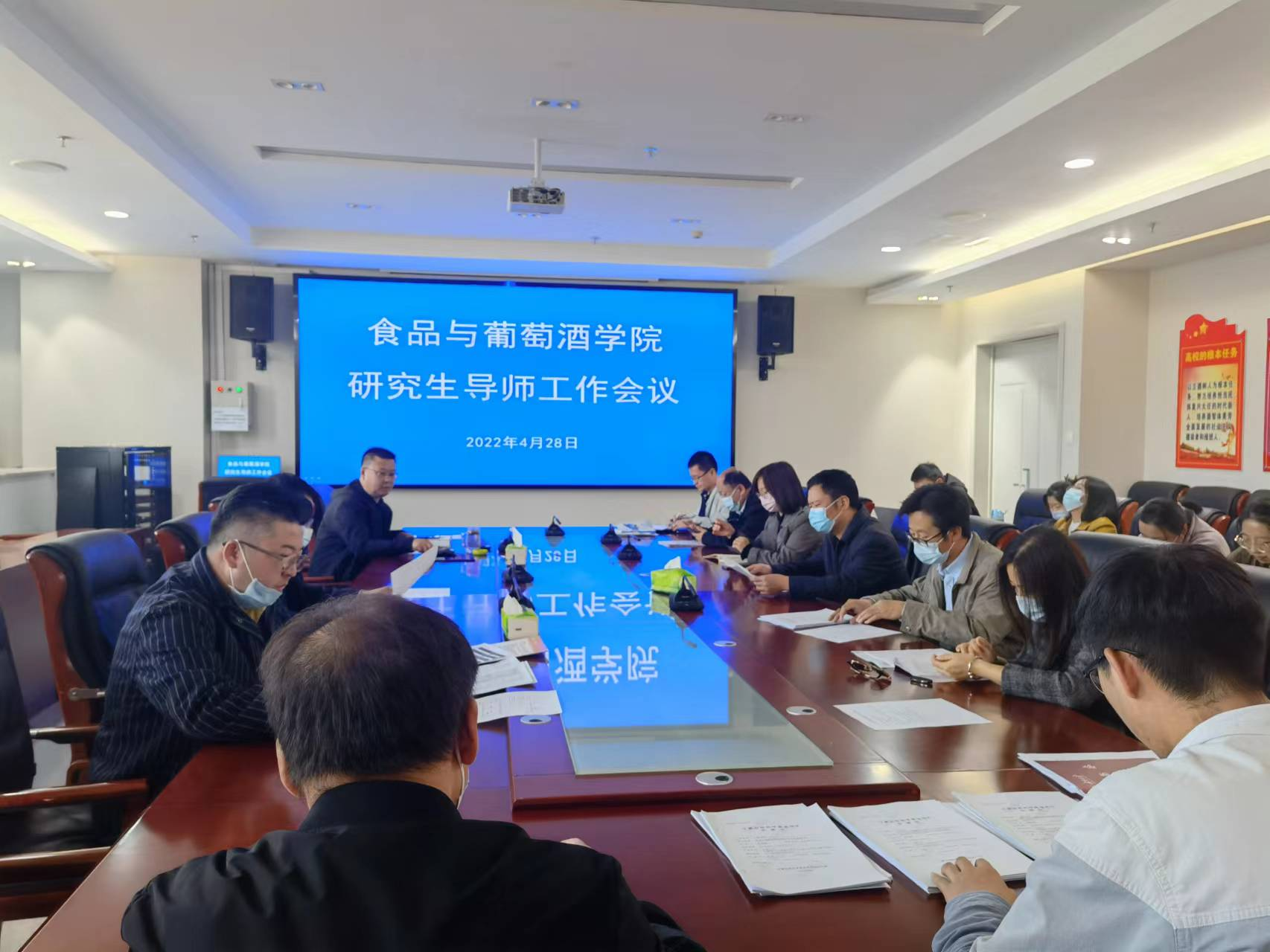 4月28日下午,食品与葡萄酒学院在科技楼410会议室召开研究生导师工作会议,会议由方海田副院长主持,张军翔副院长、马浩谦副书记、教科办负责人及全体研究生导师一起参加会议。本次议主要针对应届毕业研究生就业、博士点申报工作、硕士培养方案修订等工作进行通报商讨,以提升研究生培养质量,助推学科点发展。