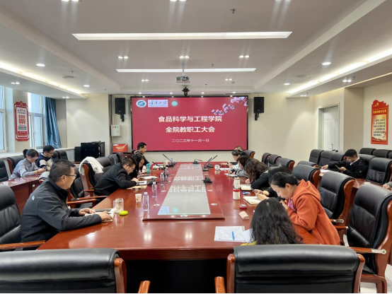 接着,今年9 月学院新引进的青年教师艾静雅博士结合自己博士阶段的研究成果进行了学术交流分享,方海田副院长就生物医药专业硕士学位点申报工作进展情况、食品科学与工程一级硕士学位点审核评估工作进行了汇报,李文华副书记就学院党总支会审议通过的17项学院党建工作规章作了说明,并代表刘源院长对学院行政工作进行了汇报。