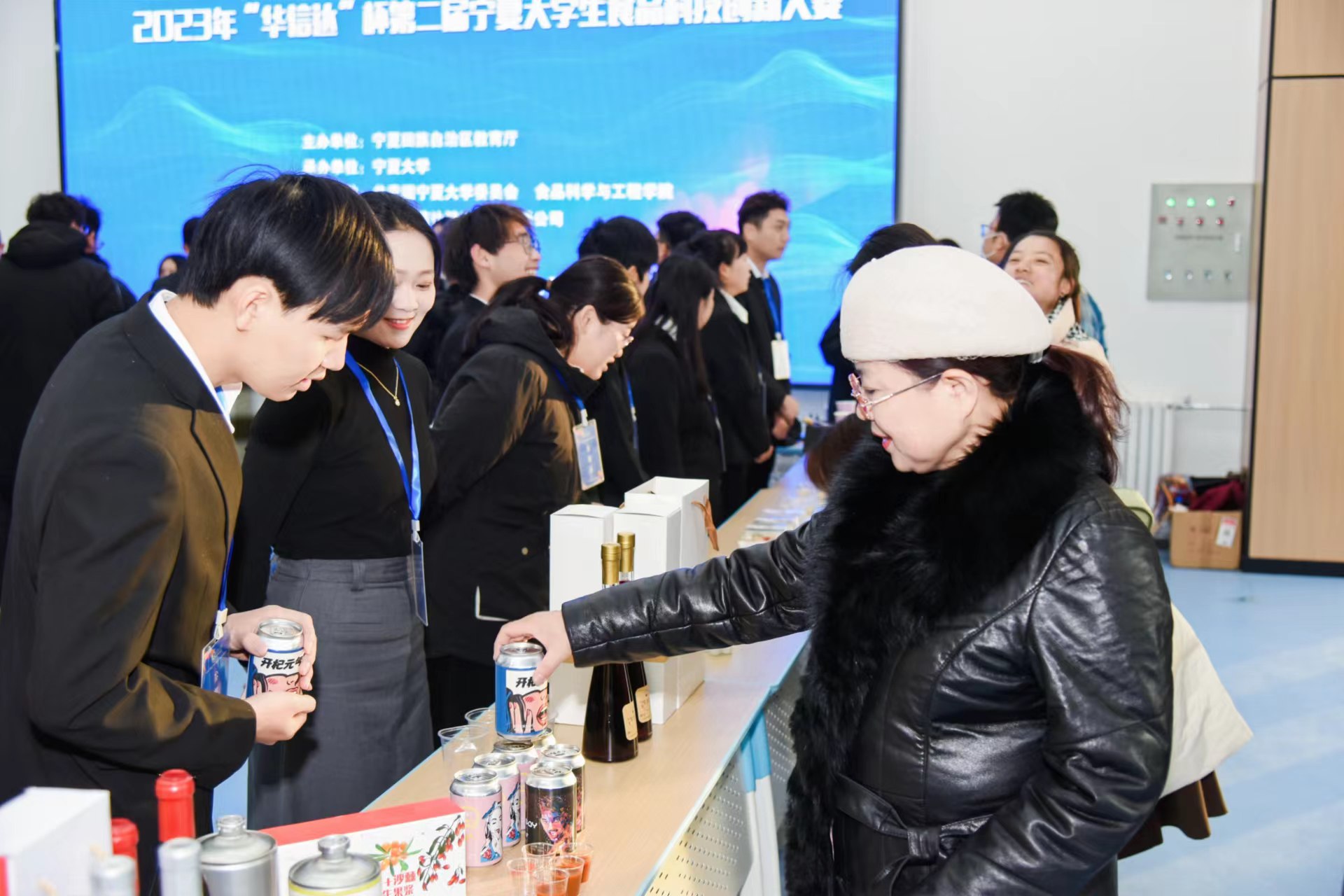 参赛项目紧密围绕宁夏葡萄酒、枸杞、牛奶、肉牛、滩羊、冷凉蔬菜等“六特”重点产业需求,以创新、创意、创造诠释食文化的时代特色、美味营养和健康安全,各参赛团队在宁夏大学贺兰山校区未来教室一楼大厅展示创新成果,包括食品创新作品、食品安全检测技术、新型食品包装等。