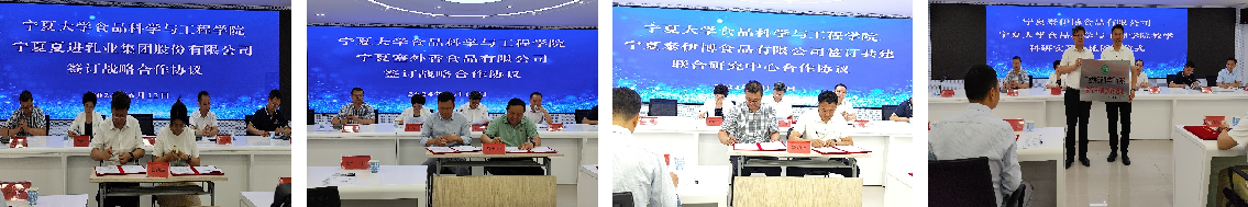教学科研实习基地”牌匾,并与吴忠金积工业园区管委会主任陈华签订了战略合作协议;宁夏夏进乳业集团股份有限公司项目主管吴红军、宁夏塞外香食品有限公司副总经理刘自斌,分别代表企业与刘源院长、章中教授签署了校企战略合作协议,宁夏泰伊博食品有限公司总经理吴怀兵与方海田副院长签订了“全谷物烘焙先进发酵技术联合研究中心”共建合作协议。签约仪式后,夏进乳业项目主管、塞外香副总经理和泰伊博公司负责人分别进行了发言,介绍了企业的发展及与香港六合彩直播