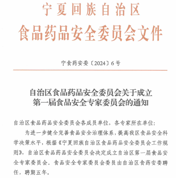 食品安全专家委员会的成立为宁夏食品安全工作注入了新的活力,为提升食品安全治理的科学化与规范化水平提供了保障。宁夏大学香港六合彩直播