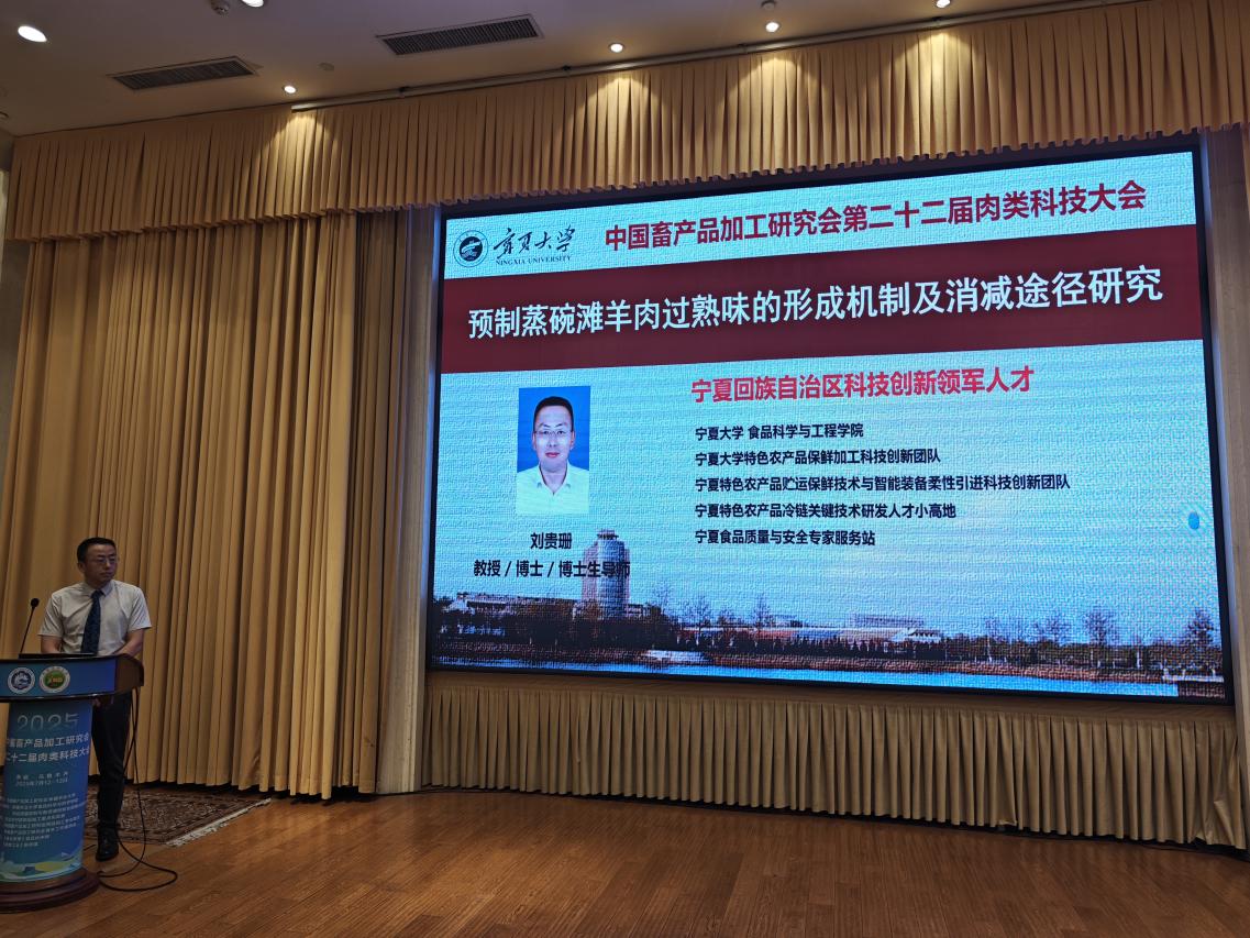 王松磊副院长发表了题为《基于深度学习的多源高光谱肉品危害污染实时评估模型构建与AI驱动优化》的报告,内容涵盖宁夏肉品产业发展及污染危害。面对存在养殖、屠宰加工、饲料加工环节的污染及食源性疾病频发等问题,凸显实时无损检测需求。