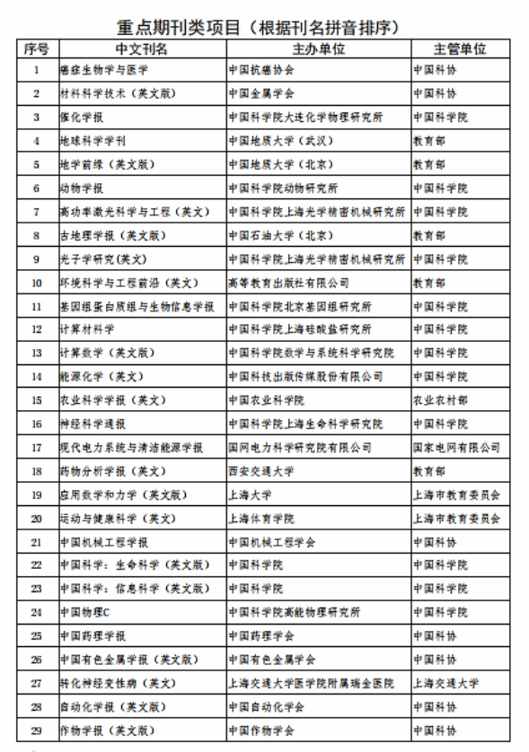 附件一 2020年中国科技期刊卓越行动计划入选期刊目录